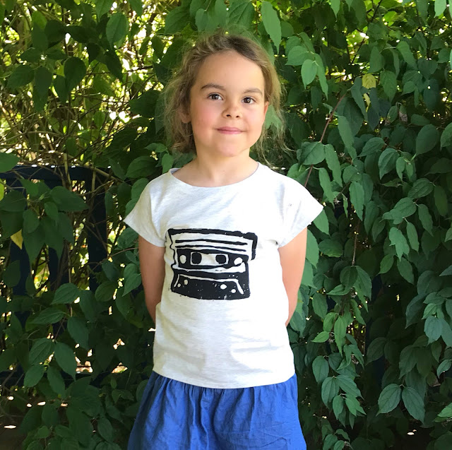 There are a lot of second hand t-shirts around here that are a bit stained, but still have a lot of wear in them, so I printed a few for Olive and they are good for another summer!